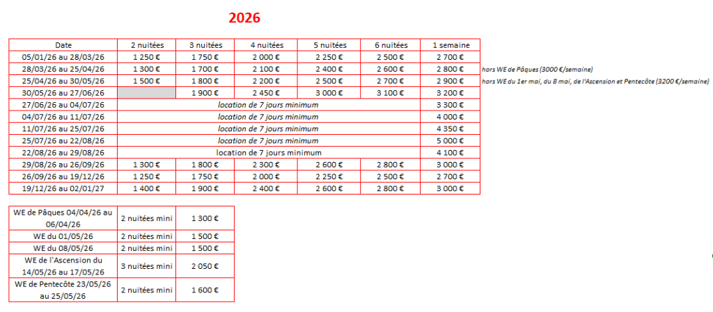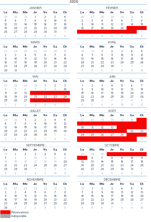 - Paiement du solde le jour de votre arrivée (+ taxe de séjour)